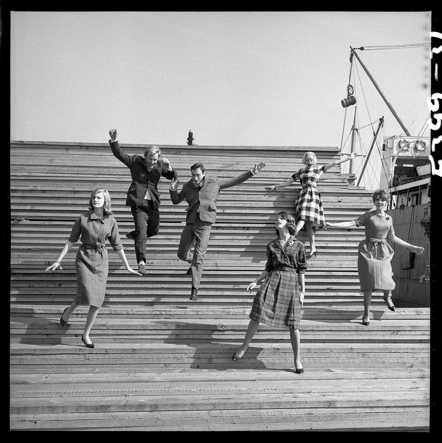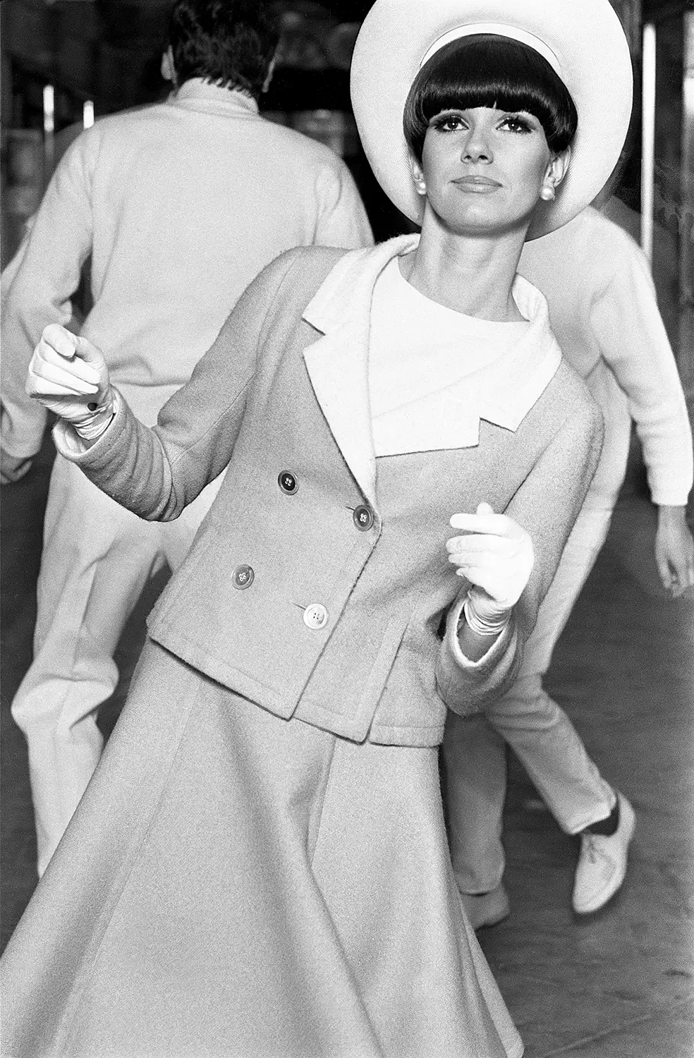 The model is Nicole De Lamargé, dancing with two unknown male models. The issue also featured a Duffy image of Michael Caine with Len Deighton.