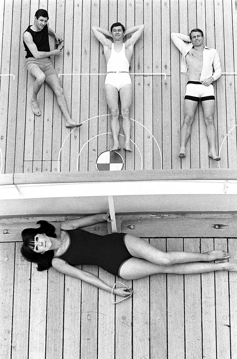 Shot for Town magazine and published in July 1965. The article titled 'In Which We Surf' was to showcase the latest beach fashions. The session took place on board the P&O Orient Line SS Orsova cruise ship.