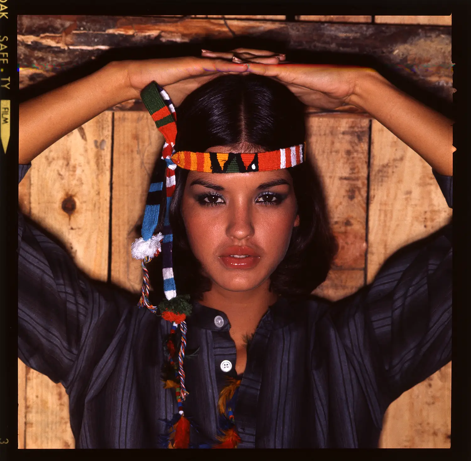 Model Janice Dickinson at age 20 during her time in Paris shot for French ELLE by Duffy in June 1975. After being turned down by New York modeling agencies Dickinson traveled to France. At the time, American fashion magazines were dominated by blue-eyed, blonde-haired models. The progressive and diverse European fashion industry was much more welcoming, elevating Dickinson to 'Supermodel' status. On her return to New York in 1978 she was in such high demand that she spent the next several years working for nearly four times the standard rate.