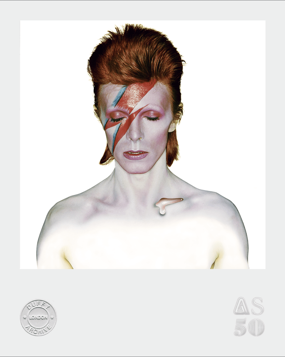 This special edition of 500 copies comprises of a white linen clamshell box with silver foil lettering. Inside is the Aladdin Sane 50 hardback book along with three exclusive 10” x 8” fine art prints on a Hahnemuhle 340gms silver metallic paper and a signed and numbered certificate of authenticity. All prints are embossed with the Duffy Archive and AS50 stamp. The books can be personalised with a message upon request.